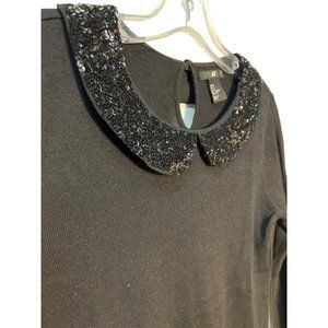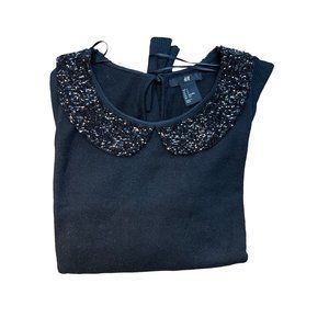H&M Black Top Sweater Sequined Sparkling Peter Pan Collar Blouse