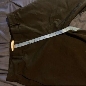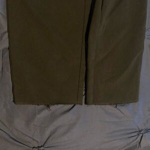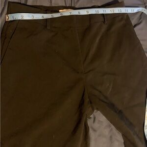 Sleek black trousers. Perfect for any occasion. Comfortable fit. Waist is elastic with zipper and hook closure, pockets, bottom of pants have a raw edge, sort of frayed edges for a pop of style! Size 6 excellent quality fabric.