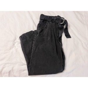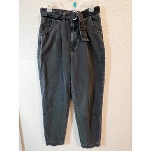 H&M Black Ultra High Waist Belted Tapered Mom Jeans Size 6