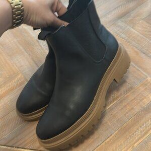 H&M Black Vegan Leather Chunky Chelsea Tan Platform Ankle Boots EU 40 US 9