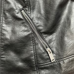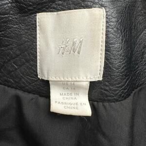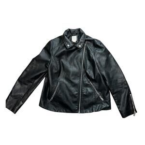 H&M Black Vegan Leather Moto Jacket Short Women's 14 Zippers Casual Faux Biker
