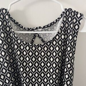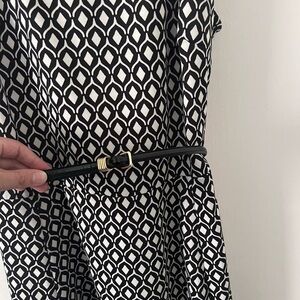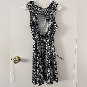 H&M Black & White A-Line Midi Dress Open Back w/ Removable Belt Large