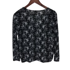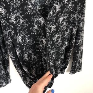 H&M Black White Floral Faux Wrap Shirt Top Women's Size XS