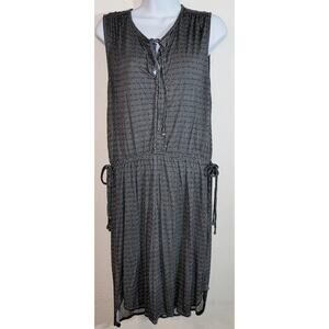 H&M Black White Geo Print A-Line Midi Dress Medium Sleeveless Hi Low Hem