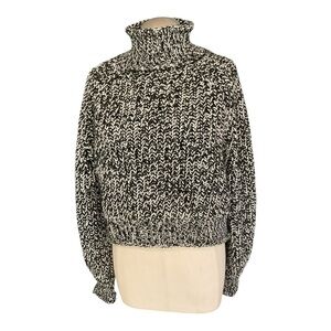 H&M Black White Marled Chunky Knit Turtleneck Sweater Size Medium
