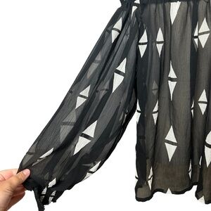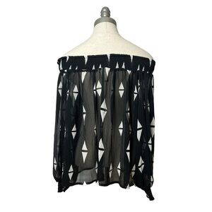 H&M Black White Printed Off The Shoulder Long Sleeve Beachy Sheer Blouse Size 6