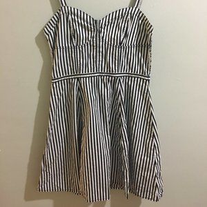 JVGrabs - Cute short Black and white pinstripe dress. Zipper in the back, and adjustable straps. Runs small. Fits a female size 6 34-B 100% cotton - Size - 8 - Condition: - Item# 50
