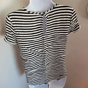 H&M Black & White Striped Blouse Short Sleeve Sz US 4 Keyhole Button Back Shirt