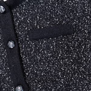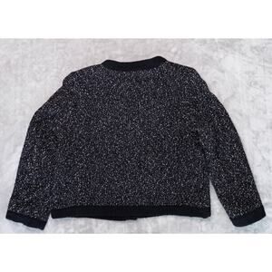 H&M Black White Textured Weave Wool Blend Tweed Lined Collarless Cardigan Style Jacket Womens Size L Excellent condition - see pictures for measurements