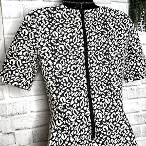 H&M Black & White Fit & Flare Short Sleeve Dress Size 6 Medium