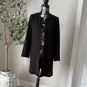 Chic black blazer coat by H&M. Minimalist design with open front. Perfect for layering.