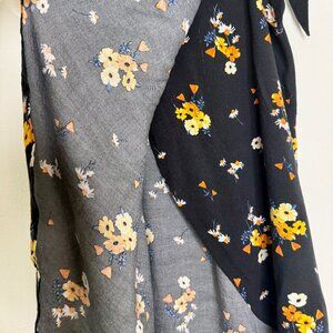 H&M | Black Wrap Skirt with Yellow Floral Pattern - 6