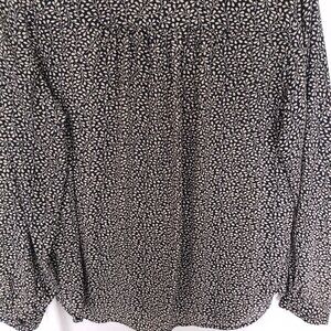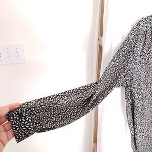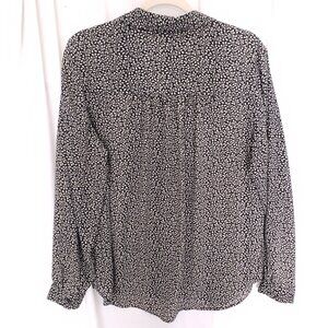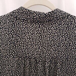 H&M Black and Beige Leaf Pattern Collar Button Up Long Sleeve Blouse Size 12