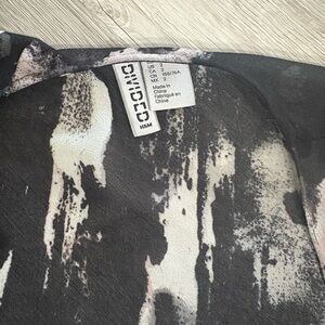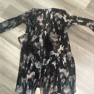 Chic cardigan with a unique black and cream design. Ideal for layering.