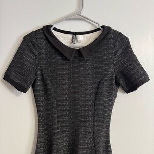 H&M Black and Gray Peter Pan Collared Skater Dress Size 6