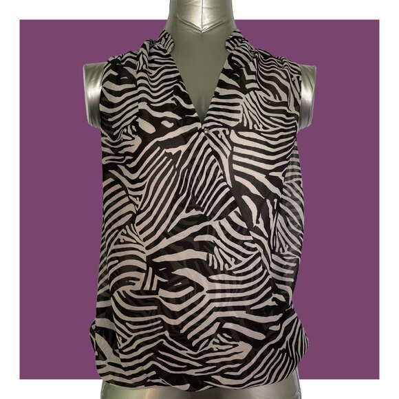 H&M Black and Grey Zebra Print Mock Wrap Sleeveless Blouse Top Size 4