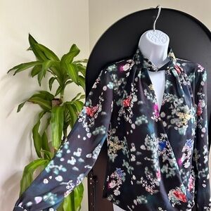 This chic H&M blouse features a sophisticated faux wrap design in a striking black and pink color palette. The long sleeves and smooth fabric offer a stylish and comfortable fit, perfect for elevating any outfit. Excellent condition from a smoke-free home.