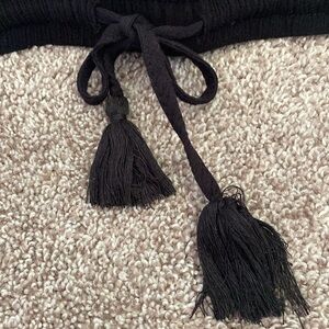 These high-waisted shorts by Divided showcase intricate red and white floral embroidery on the pockets. Adjustable waist from a tasseled drawstring. The elastic waistband provides comfort, while the relaxed fit adds a touch of casual elegance. Ideal for a bohemian-inspired look.