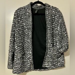 H&M Black Open Front Sequin Dressy Textured Jacket Sweater