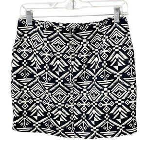 H&M Black and White Aztec/Tribal Print Lined Mini Skirt Women’s Size 6