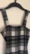 Chic mini dress with bold checkered pattern. Features a square neckline and wide straps. Ideal for casual outings.