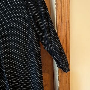This chic H&M dress features a classic black and white color scheme with a stylish dolman sleeve design. The sheath silhouette and crew neck make it perfect for both work and casual occasions. The peter pan collar adds a touch of elegance to this versatile long sleeve dress.