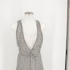 This chic H&M sundress features a stylish ruched design and a daring plunge neckline, perfect for casual or resort wear. The sleeveless, backless style adds a touch of elegance, while the mini length keeps it playful and modern. Available in classic black and white, this dress is a versatile addition to any wardrobe.