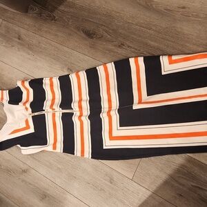 This elegant H&M dress features a classic black and white color scheme in a sophisticated sheath style. Designed with a sleeveless cut and a scoop neckline, it is perfect for cocktail events or a night out. The midi length adds a touch of timeless elegance to this chic piece. size Small measurement from pit to pit 14 inches Top to bottom 39 inches