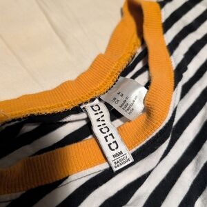 H&M Black and White Striped Top with Yellow Trim - Slightly Cropped
