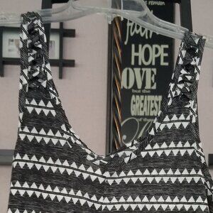 Chevron B&W tank top XS Good condition High-low style Criss-cross open design straps