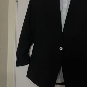 H&M Black career collarless contemporary blazer work jacket one button size US 6