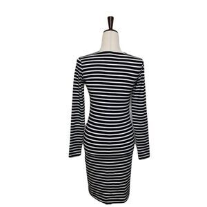 H&M Black And White Striped Long Sleeve Fitted Dress Size S