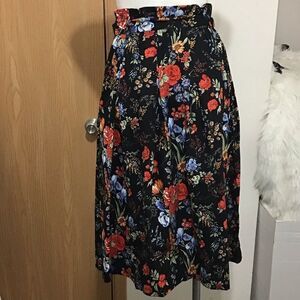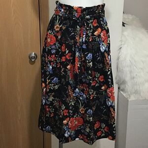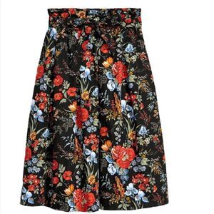 H&M Black Floral Print Paper Back Waist Self Tie Belt