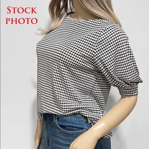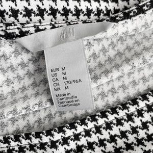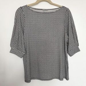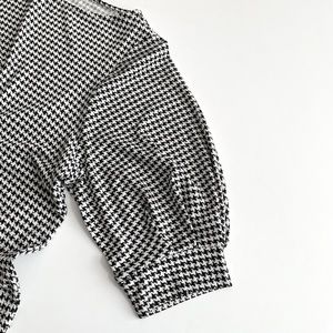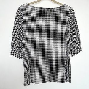 H&M Black/White Houndstooth Pattern Puffy Short Sleeve Blouse Top Size M