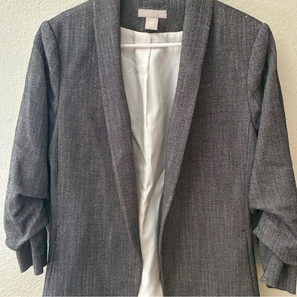 Chic black and white blazer with a textured pattern. Ideal for versatile styling.