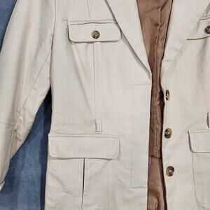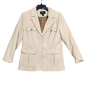 H&M Blazer Jacket Size 12 Beige Button Closure Tan Twill Heavyweight No Belt