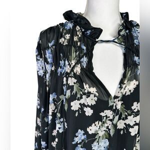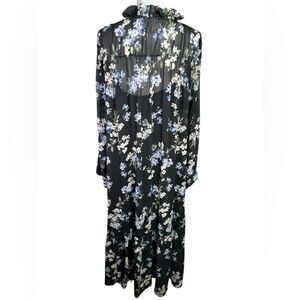 H&M Blogger Long Chiffon Dress Black Floral Large