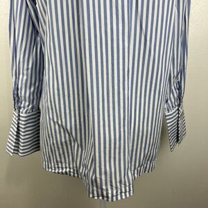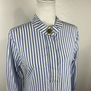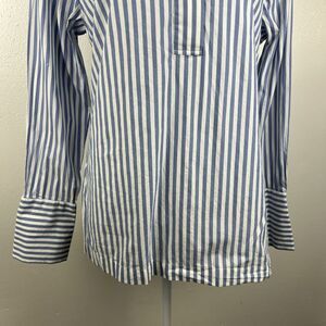 H&M Blouse Women 14 Blue White Vertical Striped Henley Long Sleeve Casual Top