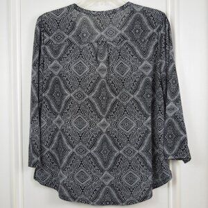 H&M Blouse Women Medium Abstract Geometric All Over Print Black White Casual