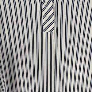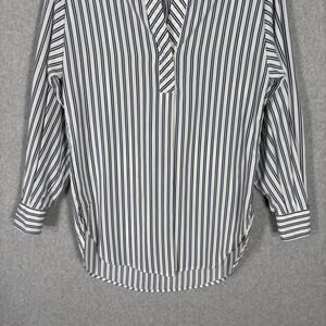 H&M Blouse Womens 6 Small White Blue Striped Tunic Popover Shirt Long Sleeve V Neck Chiffon Corp Career Work Office Business Church Classic Casual Preppy Nautical