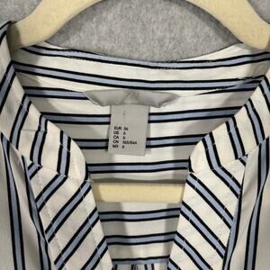 H&M Blouse Womens 6 Small White Blue Striped Tunic Popover Shirt Career Office