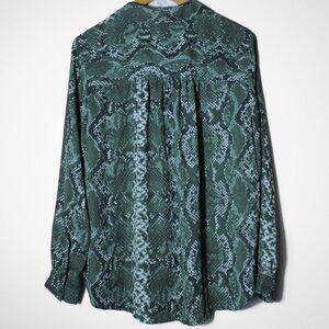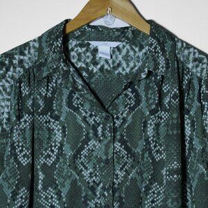 H&M Blouse Womens Size 16 Green Long Sleeve Button Up Snake Animal Print Career