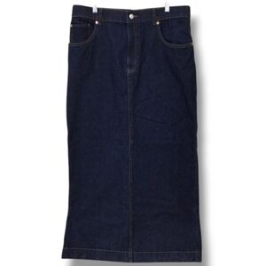 H&M Blue Denim Maxi Skirt Jean Skirt Size 10 High Back Slit