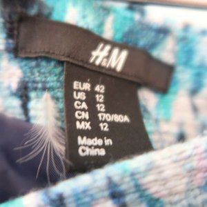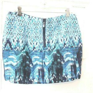 H&M Blue Green Watercolor Mini Pencil Skirt Cotton Linen Lined