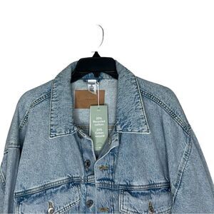 H&M Blue Long Sleeve Oversized Slouchy Boxy Denim Jacket Size Large