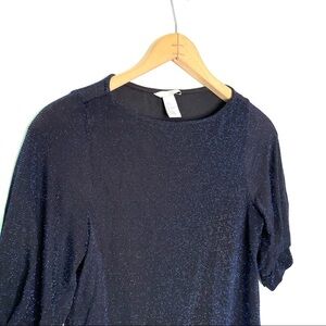 Excellent condition! Blue and black metallic sparkly top. Short puff sleeves. Size XS 16” armpit to armpit 23” length