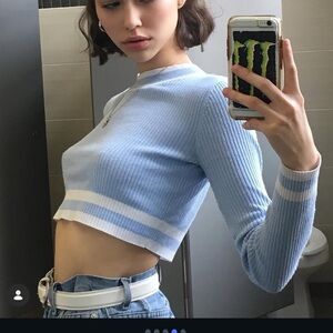 H&M Blue Ribbed Cropped sweater Pre-loved Size: S Color: Baby blue Brand: h&m