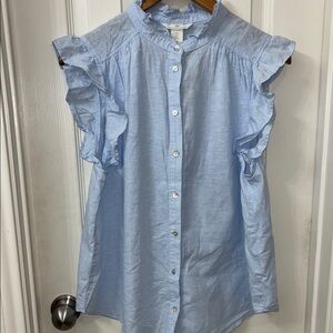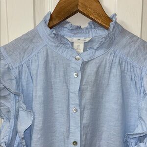 H&M Blue Ruffled Button Down Blouse