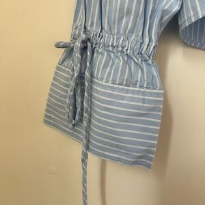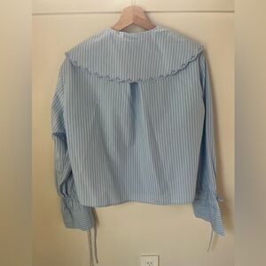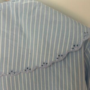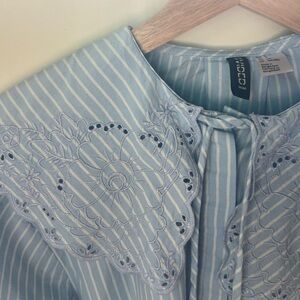 H&M Blue Striped Blouse with Peter Pan eyelet Lace Collar