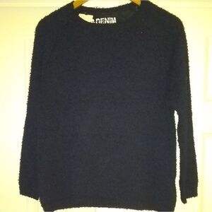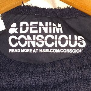 H&M & Conscious Denim dark blue textured sweater. The texture has a look similar to boiled wool, but it is much softer and not scratchy.